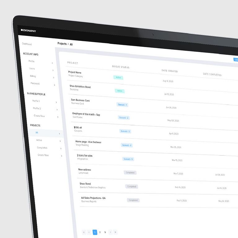 Send your requests and communicate with your designer in our purpose-built web app. Invite your team, manage your projects, store all your files and documents in one place.