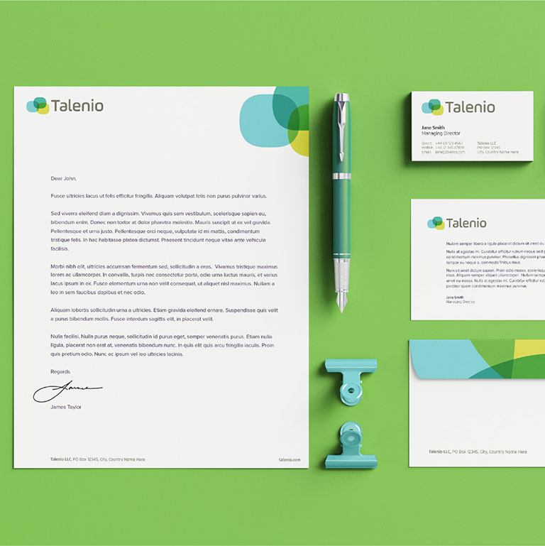 Your final design files that includes your logo, business cards, letterhead, envelopes and your social profile cover photos will come in high-res industry-standard for you to use in print, online, and anywhere else